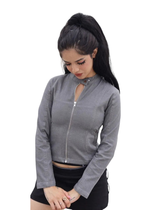 Moto Doll Fitted Jacket- Grey