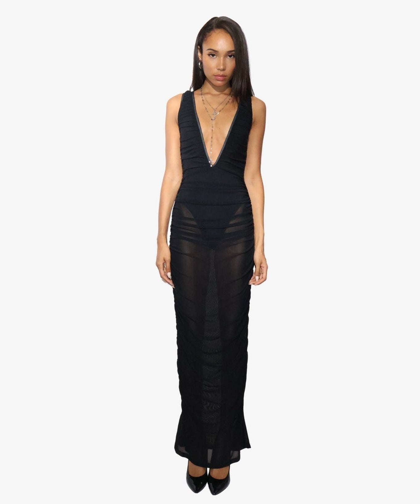 Slinky Long Mesh Dress