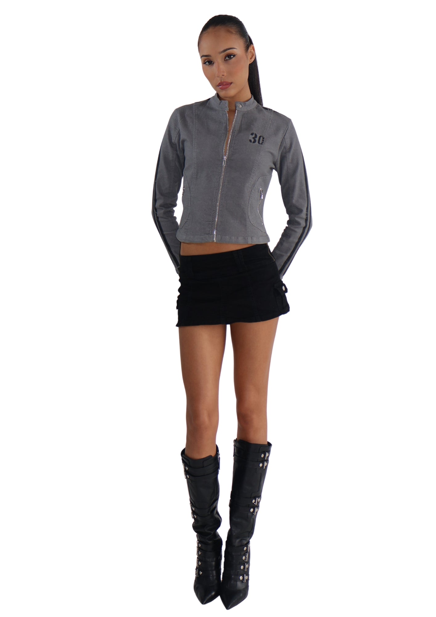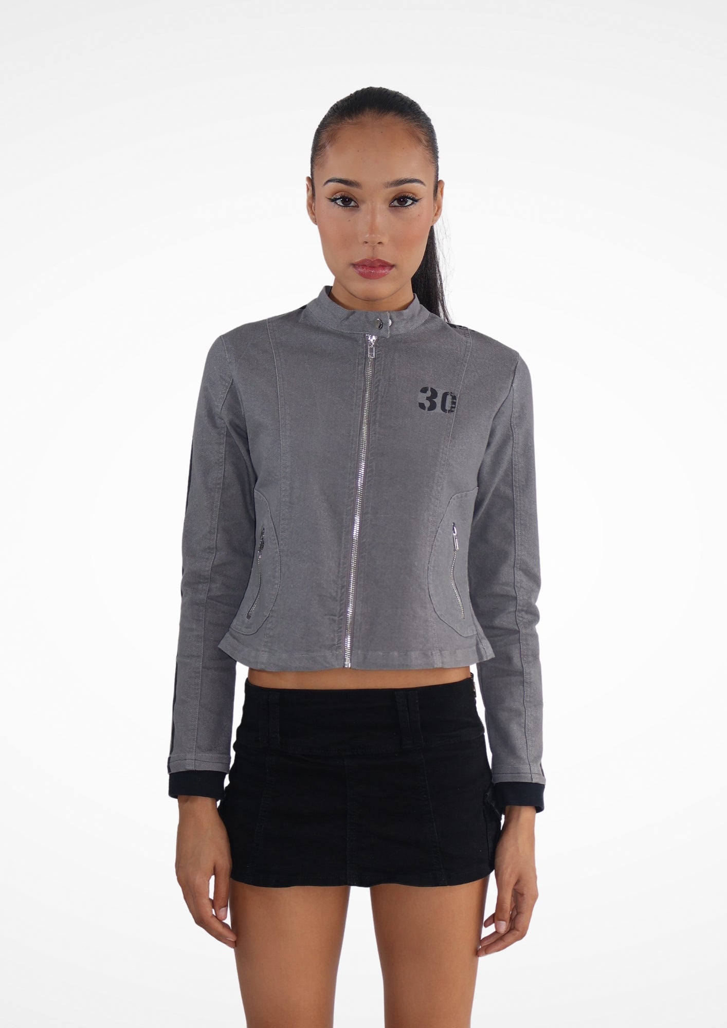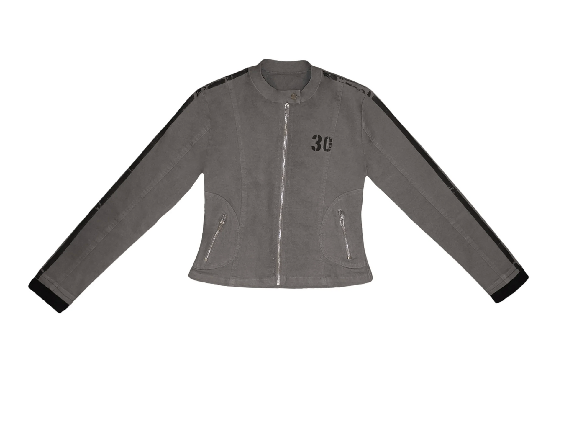 Experience the perfect blend of style and comfort with our Vintage Sport Denim Jacket. Made from a durable cotton/spandex blend, this jacket features a distressed vintage print with princess seams and top stitching for a flattering fit. Stay warm and functional with long sleeves, zippered detailing, and secure snap button and silver zipper closures. Available in a variety of sizes, including size M worn by our 5'8 model.